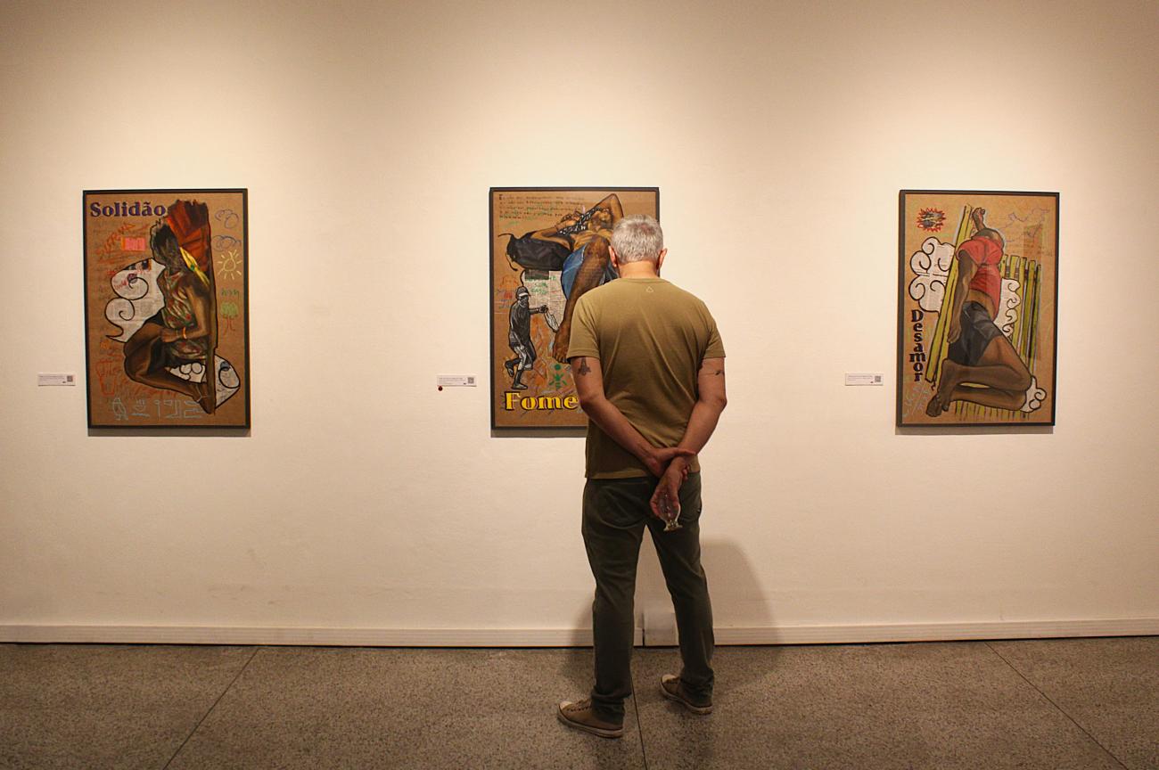 As séries aqui reunidas foram produzidas entre os anos de 2021 e 2025, mas, em verdade, trazem inquietações de alguém que, desde a infância busca entender seu lugar no mundo. O interesse pelo humano faz com que seu olhar prospecte existências em diferentes espaços de convívio para, a partir delas, elaborar uma poética em torno do que sejam os valores de uma sociedade, como são produzidos, internalizados, transformados ou rejeitados. Mesclando elementos de uma realidade escolhidos no percebido imediato e registrados em vídeo com elementos de uma tradição da pintura e do desenho, Dias Junior concebe obras que permitem à sociedade tomar consciência dela mesma - não pelo mero reflexo do espelho, pelo retrato individualizado, mas pelo coletivo, por uma interpretação onde a identidade só se faz perceptível ao ser contrastada com outra.