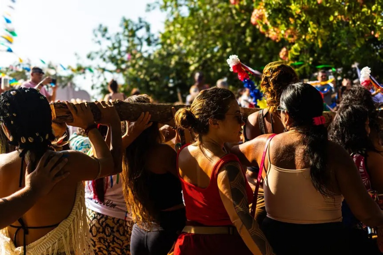 Mulheres conduzem o Mastro até à Praça do Sairé