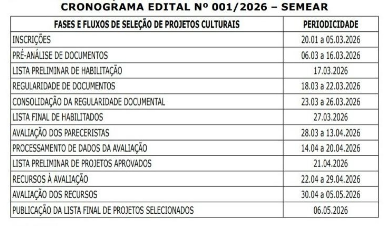 O Governo do Pará, por meio da Fundação Cultural do Pará (FCP), inicia, nesta terça-feira, 20, as inscrições para o Programa Estadual de Incentivo à Cultura – Semear. As inscrições estão abertas até o próximo dia 5 de março, e devem ser feitas exclusivamente por meio do Sistema de Gestão de Projetos Culturais do Semear – SGPSemear, disponível no site da Fundação Cultural do Pará.
